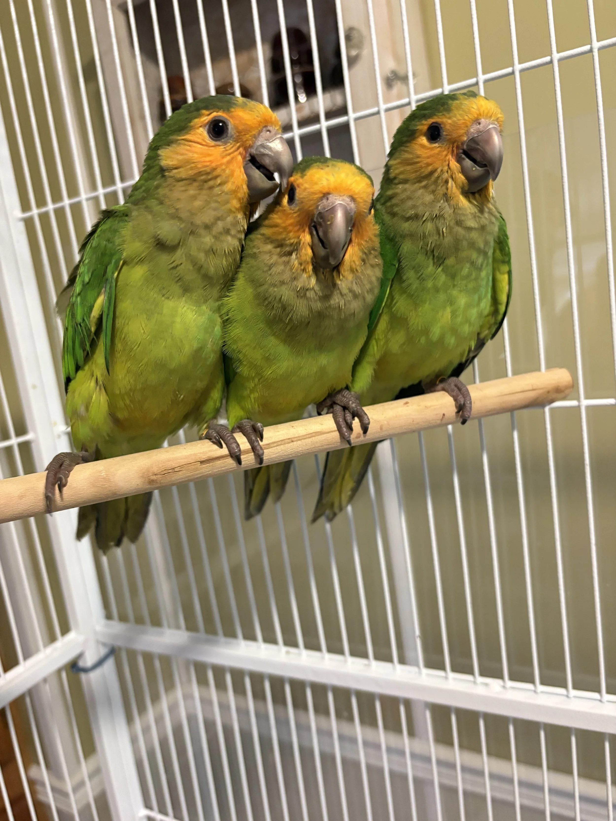 Located in the Pacific Northwest - We specialize in handfed/hand tame babies well socialized. Currently we have St Thomas, Maroon belly, Crimson belly, Green Cheek, Dusky and Halfmoon conures. We also have Black headed Caiques and Mustache parakeets. Text us at 425-268-7028 or 425-238-6671.